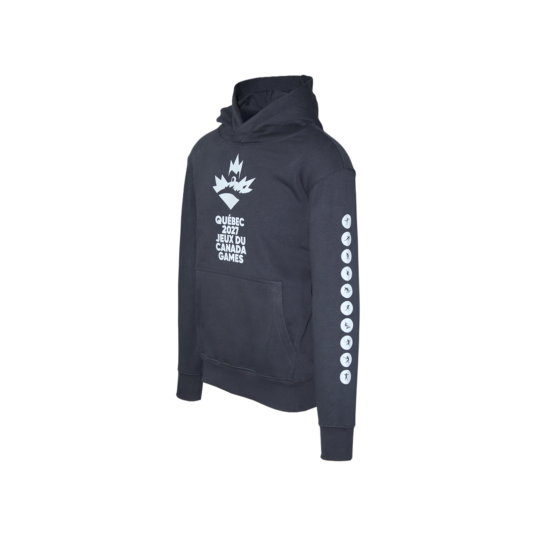 La qualité avant tout : ce modèle premium est conçu pour durer et offrir un confort supérieur. Molleton ultra épais 3 plis, capuchon doublé en jersey avec encolure croisée, poche kangourou pratique et finitions en tricot côtelé aux poignets et à la taille. Élégant et robuste, il deviendra ton incontournable des Jeux 2027.