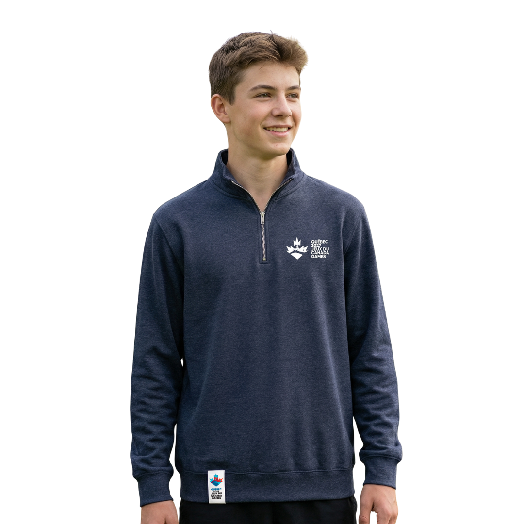 Affiche fièrement ton soutien aux Jeux du Canada 2027 à Québec avec ce chandail en molleton à fermeture éclair quart de tour, à la fois confortable et pratique. Confectionné dans un mélange 50/50 coton-polyester, son tissu Comfort-Dri™ aide à évacuer l’humidité pour te garder au frais. Sa finition antiboulochage et sa fermeture éclair YKK de qualité supérieur assurent un look soigné, jour après jour.